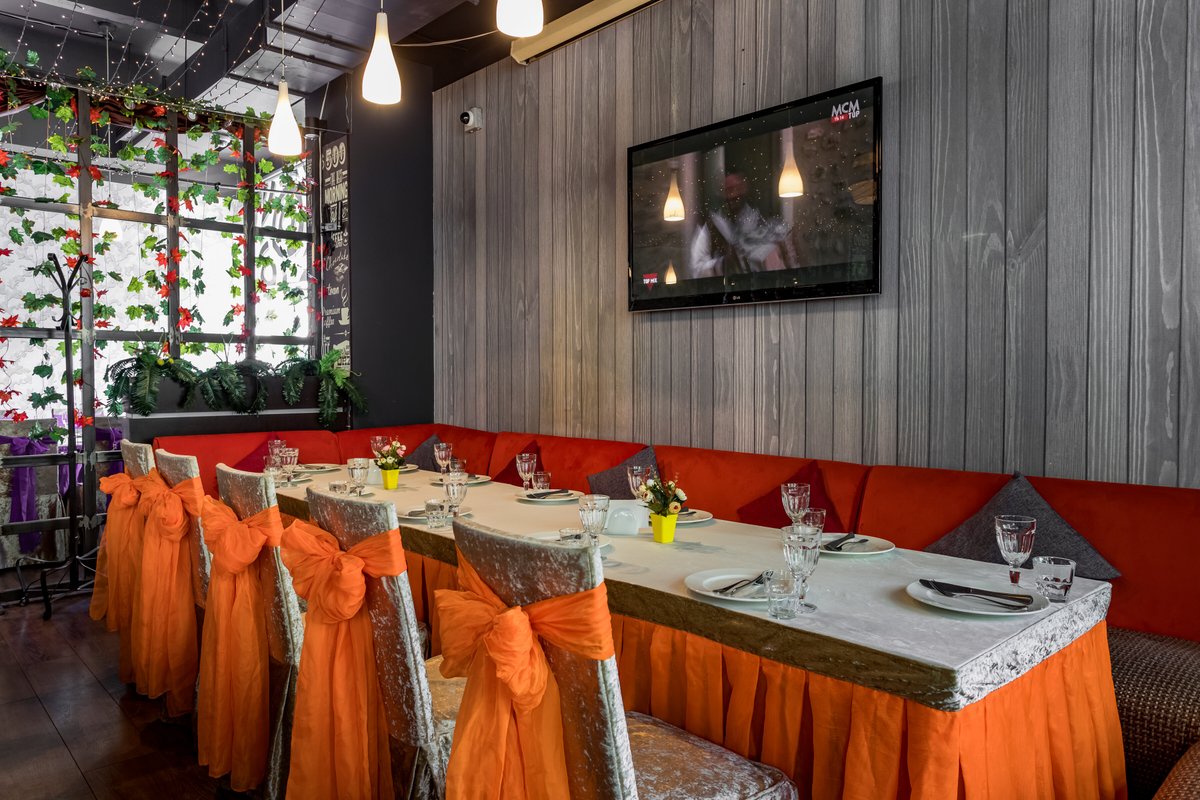 А ещё формат нашего заведения - стейк-хаус, пиццерия, спорт-бар и караоке-бар.